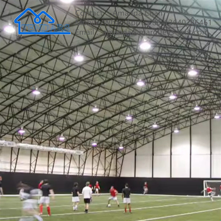 স্থান এবং আকার: স্পোর্টস তাঁবুটির আকার নমনীয় এবং ব্যবহারের প্রয়োজন অনুযায়ী বিভিন্ন অঞ্চল এবং উচ্চতার জন্য কাস্টমাইজ করা যেতে পারে। অভ্যন্তরীণ স্থান প্রশস্ত,কোন কলাম নকশা স্থান ব্যবহারের হার উচ্চতর করে তোলে, বিভিন্ন ধরণের ক্রীড়ার চাহিদা পূরণ করতে পারে, যেমন বাস্কেটবল, টেনিস, ব্যাডমিন্টন, ফুটবল ইত্যাদি।
